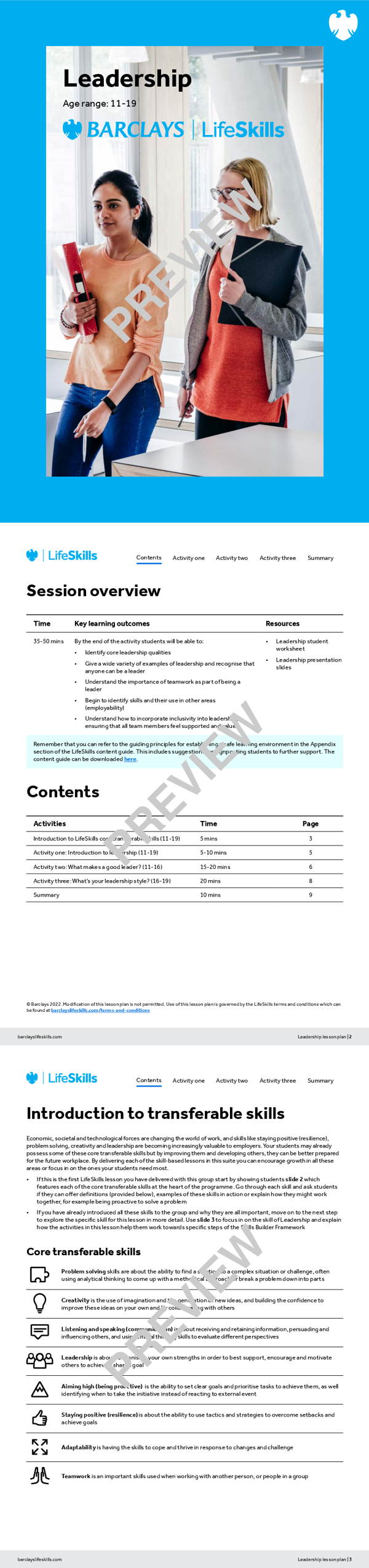 After students have built their leadership skills why not try the other lessons in our tailored suite of resources for 11-19 year olds to help them develop the key skills every young person needs to succeed today and in the jobs of tomorrow.