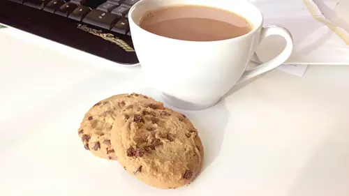 Knowing the irresistible lure of a biscuit around ‘cup of tea time’, Elspeth offered a fresh batch at her desk. The catch: staff could only have a biscuit if their timesheets were up to date.