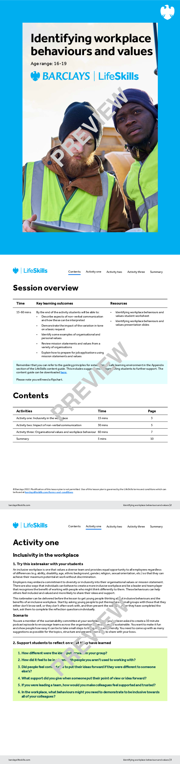 This lesson is designed to help students get to grips with expectations around behaviours at work, including types of non-verbal communication, tone of voice, values and workplace culture. It also teaches students to recognise the importance of inclusivity and respecting differences in the classroom and workplace.