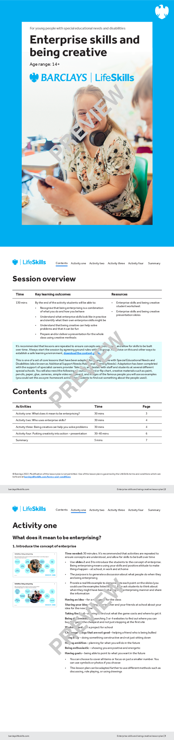 The activities focus on helping students understand what it means to be enterprising and creative, and how this can help them in a variety of workplace situations.
