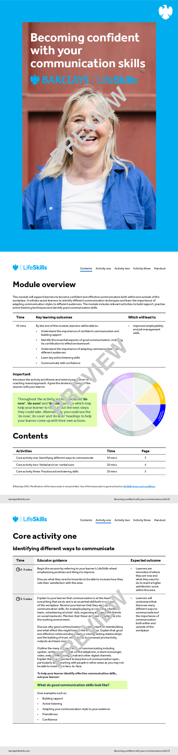 It will also assist learners to identify different communication techniques and learn the importance of adapting communication styles to different audiences. The module includes relevant activities to build rapport, practise active listening techniques and identify good communication skills.