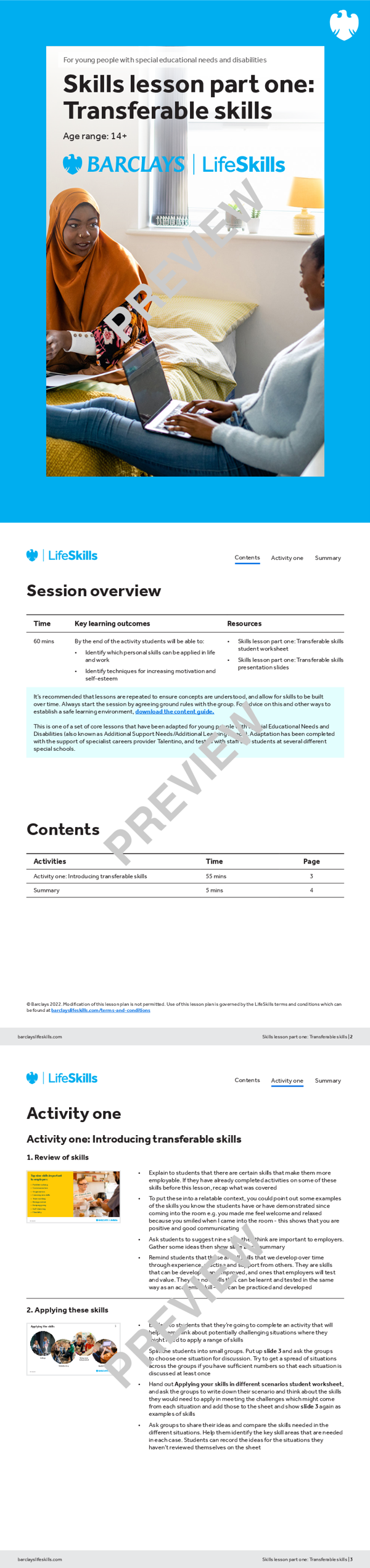 The activities focus on helping students identify and build the personal skills that are important to employers.