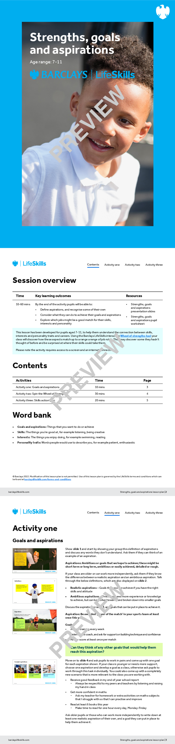 - Strengths, goals and aspirations: Pupil worksheet – to support completion of the lesson plan activities.