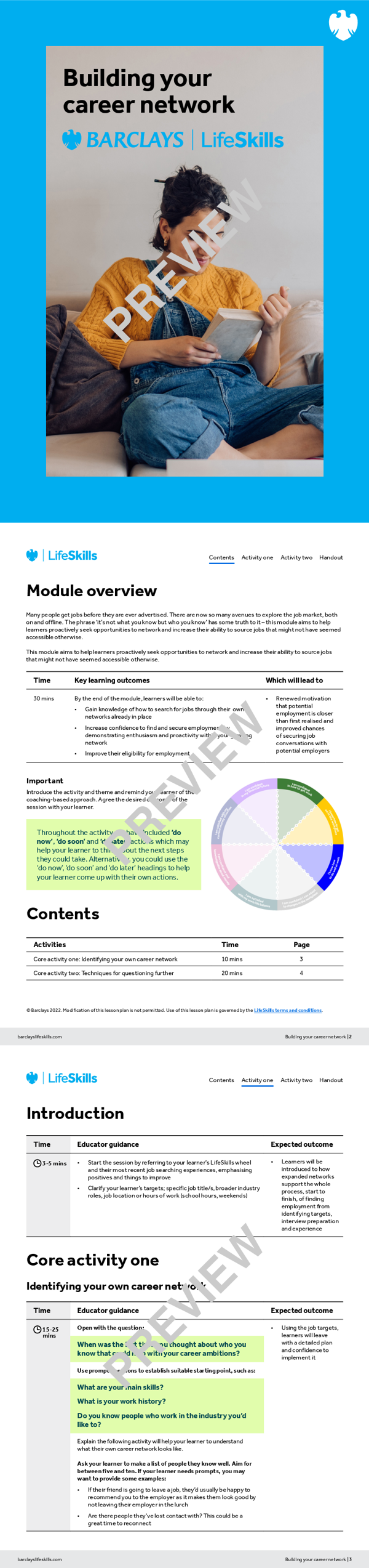 Learners will have the opportunity to prepare for and practice having conversations with people in their networks who can provide support, confidence and connections when they are looking for employment. They will be encouraged to develop skills such as aiming high (proactivity) and staying positive (resilience), and select places, people and events to improve access to jobs.