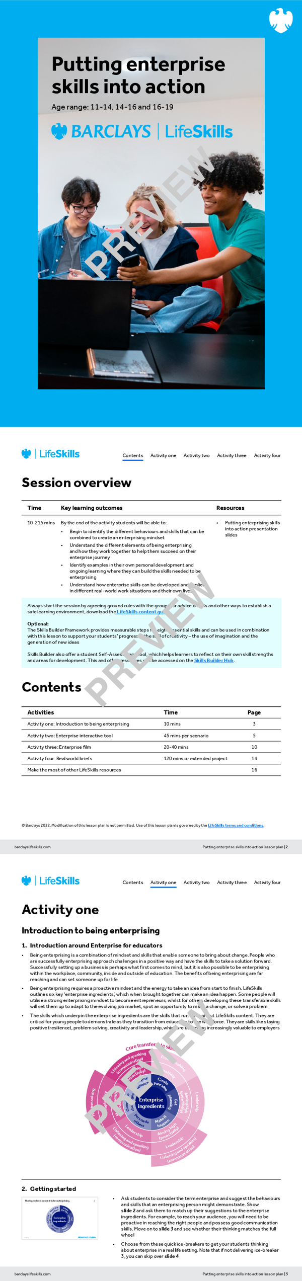 - Putting enterprise skills into action: Lesson plan and presentation slides – full lesson plan for use with a group of students in the classroom