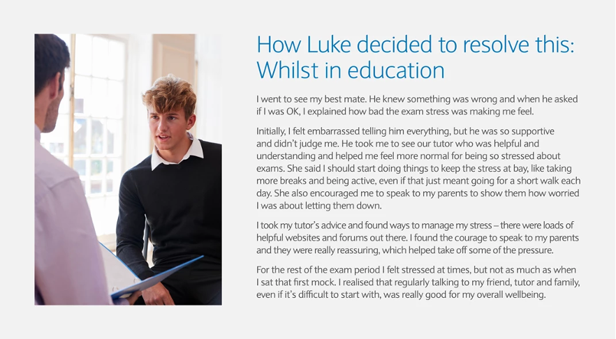 Get them to create an action plan for Luke, or for themselves if they are also experiencing exam pressure, which might include: