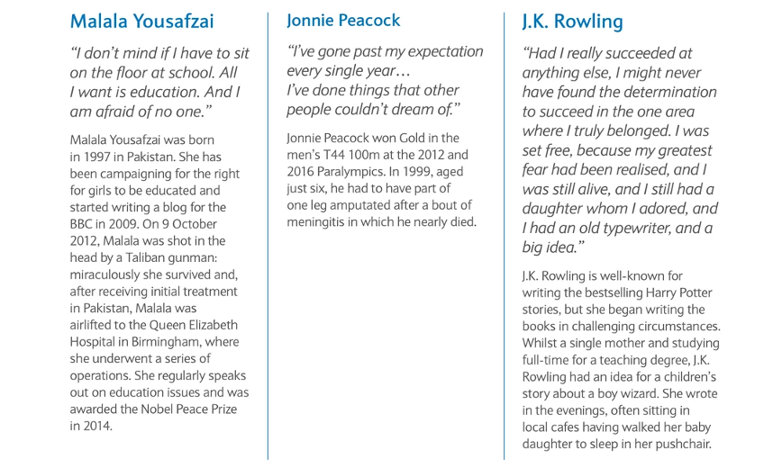 Below are quotes from three famous people. You may have other examples you can share of people they look up to such as a sports player or artist.