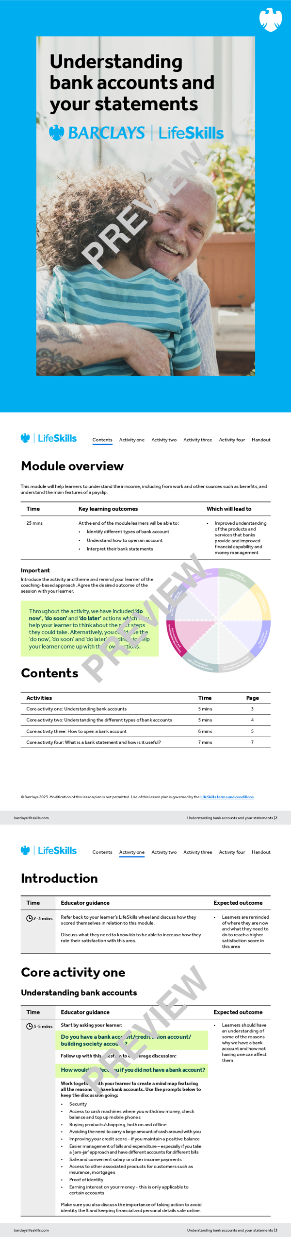 This module helps learners to learn about different types of bank account, how to open an account and understand their bank statements.
