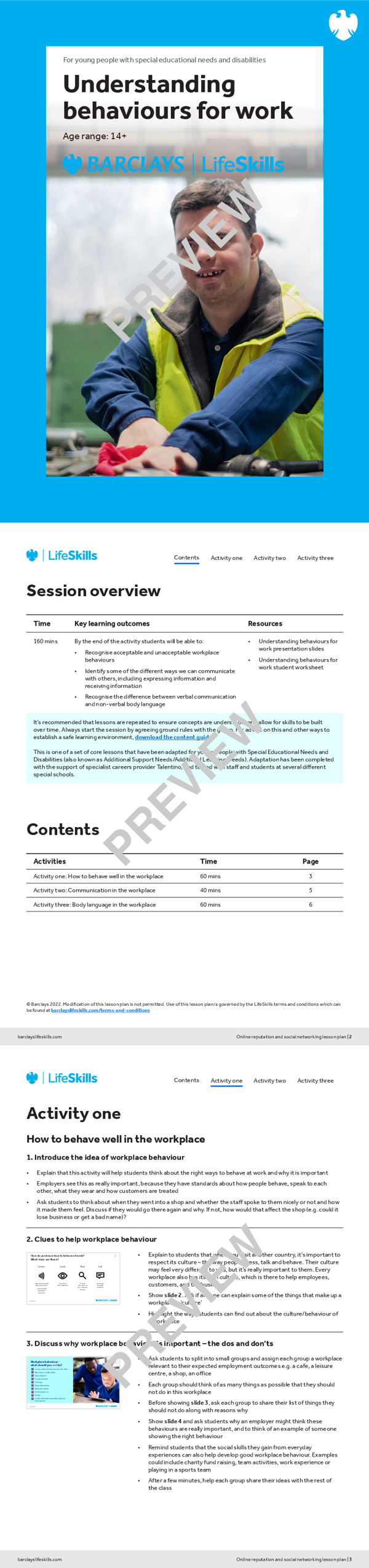 The activities focus on helping students identify the types of behaviours that will help them make the right impression in the workplace.