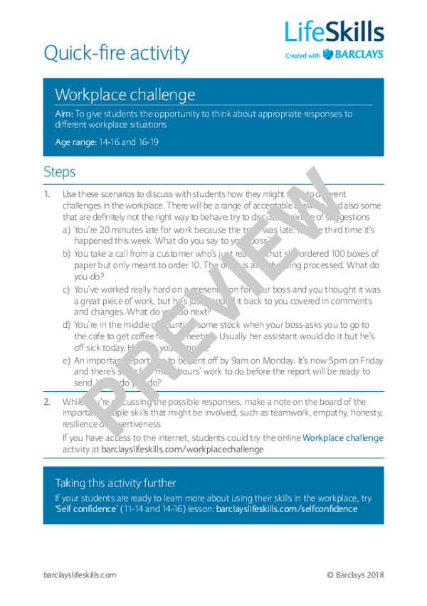 This quick-fire activity focuses on giving students the opportunity to think about appropriate responses to different workplace situations and the different skills required.