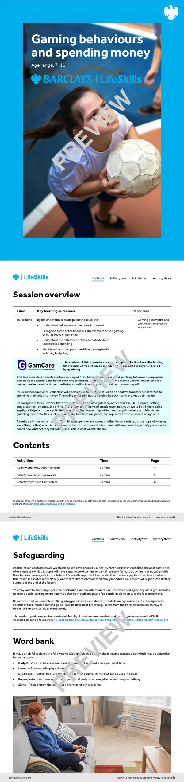 - Gaming behaviours and spending money: Lesson plan – for use with a group of pupils in the classroom.