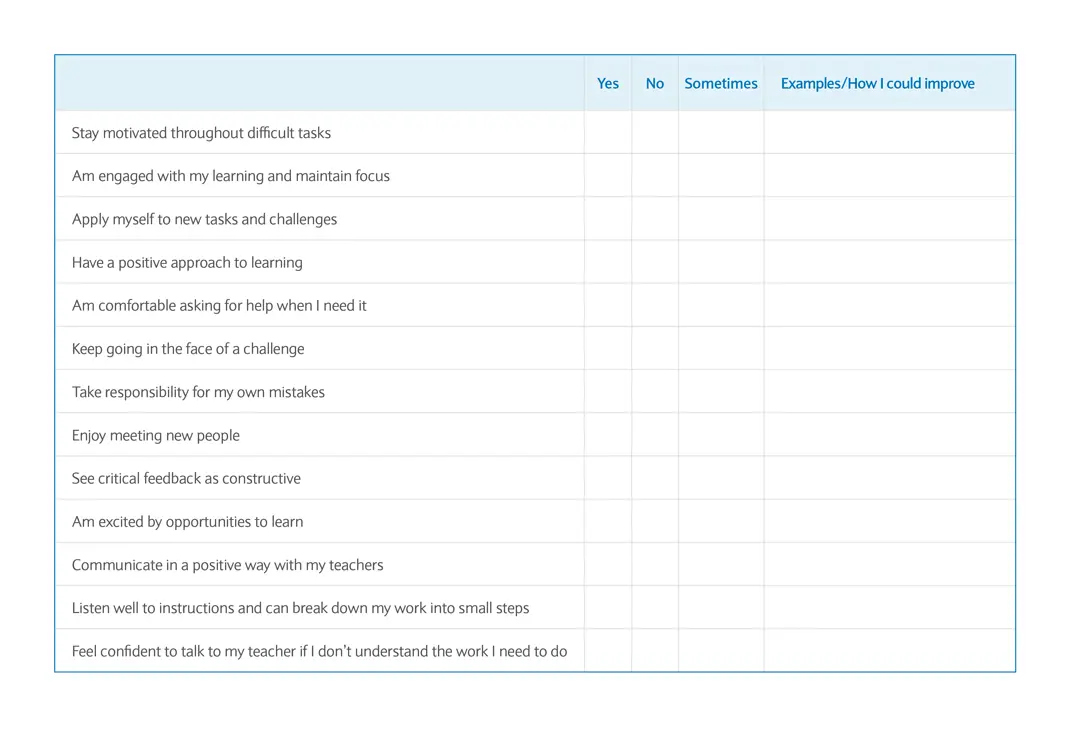 Using the table in the accompanying worksheet, ask your young person to think about how they communicate with others, particularly in a school setting, and how they deal with feedback. This activity can help them identify areas where they are staying positive and communicating productively, and perhaps some areas where they could improve.
