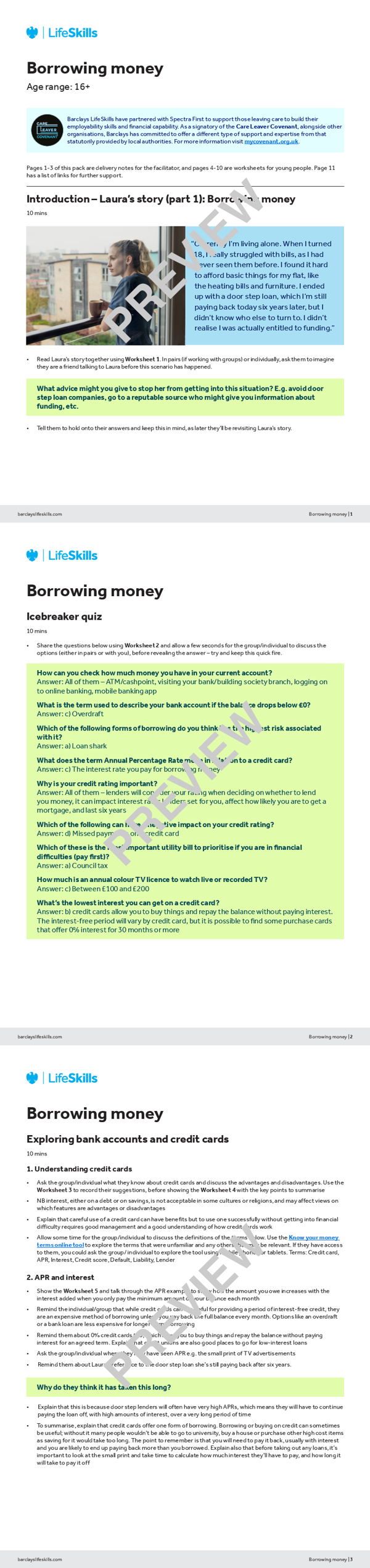This activity pack considers the benefits and risks associated with borrowing money, including loans, interest rates and credit cards. It also gets participants looking at a scenario from a real young person’s situation, with the aim of coming up with hints and tips on secure, effective ways to borrow money.