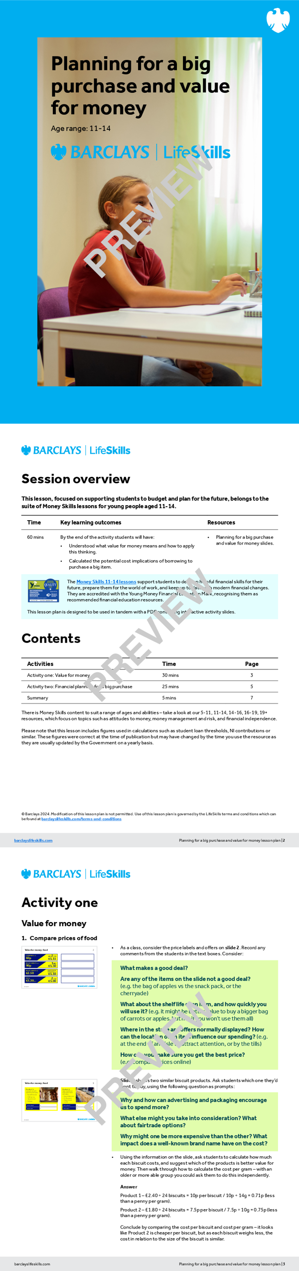 This lesson contains content from a lesson previously titled Money skills lesson two: Value for money, you can find out about the updates here.