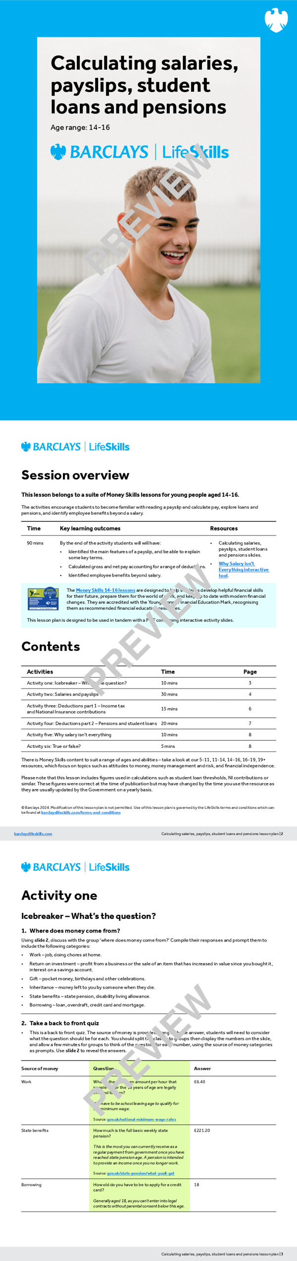 These resources align to the Young Money Financial Education Planning Framework and have been awarded the Young Money Quality Mark.