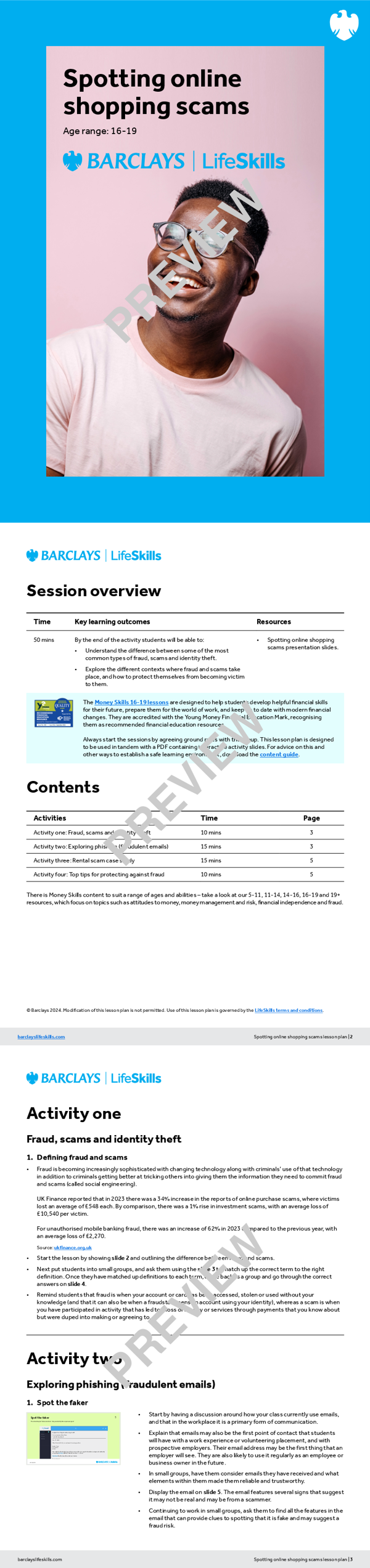 - Spotting online shopping scams: Lesson plan - for use with a group of students in the classroom.