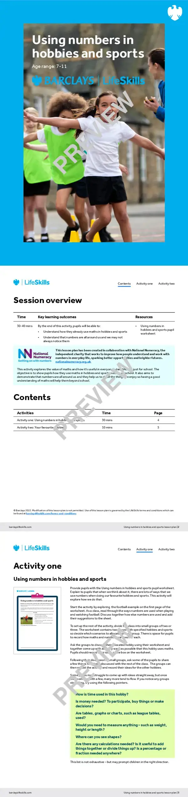 - Using numbers in hobbies and sports: Lesson plan – for use with a group of students in the classroom.