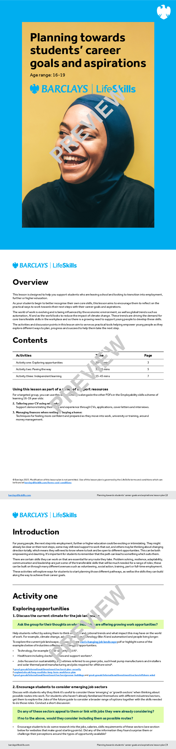 This lesson is designed to help you support students who are leaving school and looking to transition into employment, further or higher education.