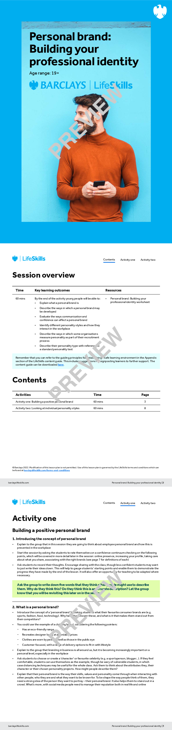 What is a personal brand and how can it have an impact? The activities on this page encourage students to think about their own personal brand, and how it links to skills such as communication.