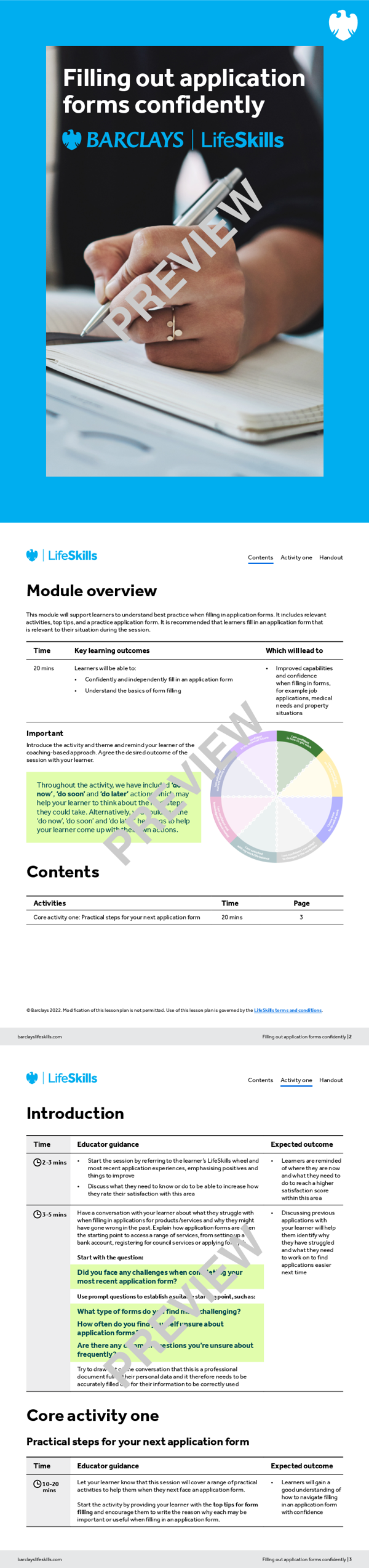 This module will support learners to understand best practice when filling in application forms. It includes relevant activities, top tips, and a practice application form. It is recommended that learners fill in an application form that is relevant to their situation during the session.