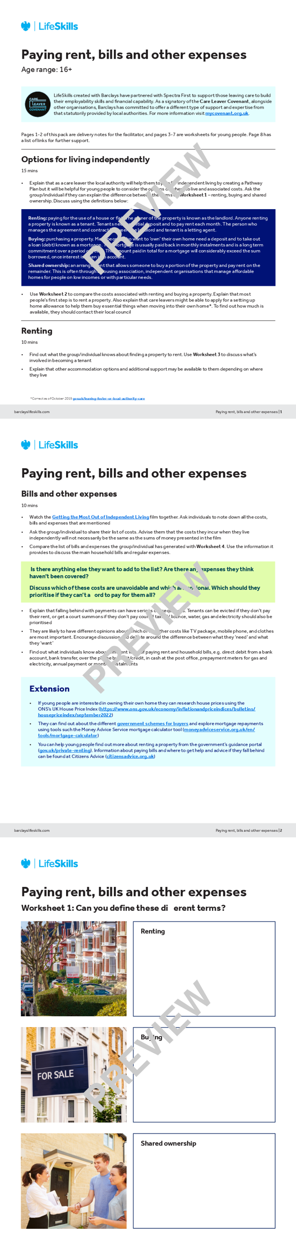 This activity pack explores the different financial aspects involved in living independently, such as rent and bills, and how to prioritise payments to stay out of debt.