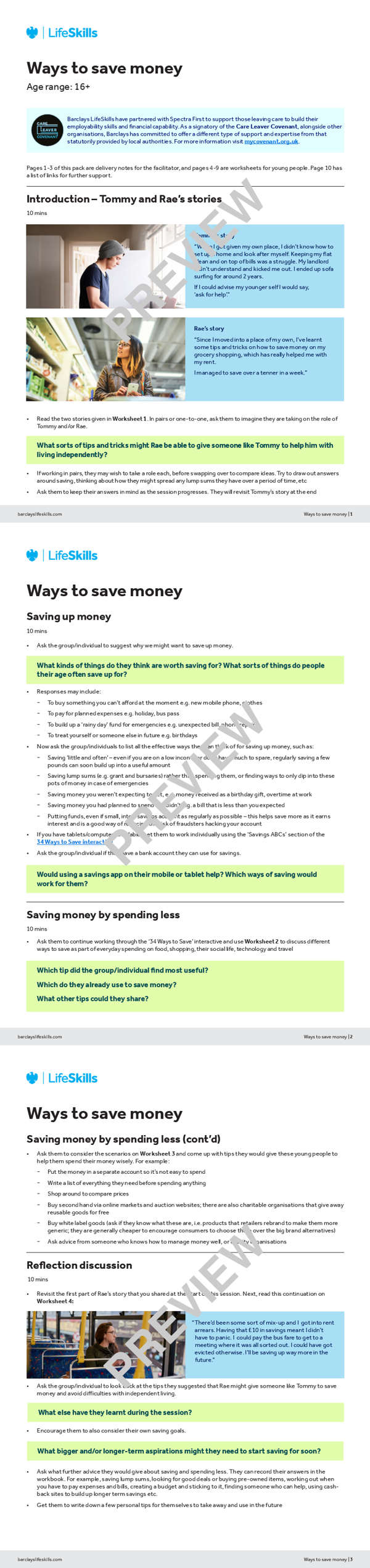 This activity pack explores different ways that young people can save money and reduce spending whilst living independently. Participants will also have the opportunity to follow the stories of two young people, helping them consider practical tips on how to reduce spending and help with independent living.