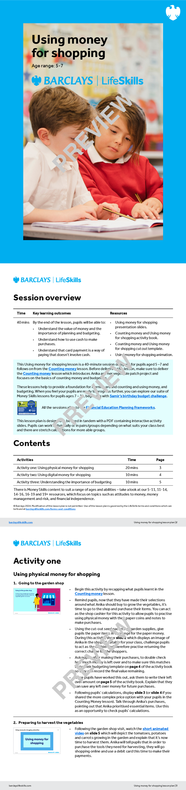 - Using money for shopping: Lesson plan - for use with a group of pupils in the classroom