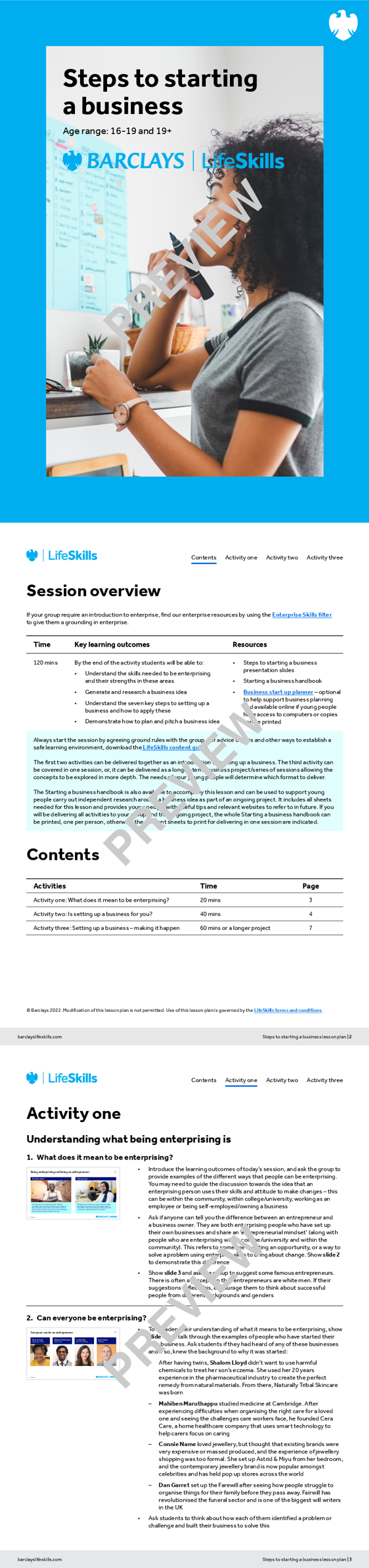 The Starting a business handbook includes the student sheets for this lesson, with useful tips and relevant websites to refer to in future. It can also be used independently by students who are keen to plan their future business ideas in more depth.