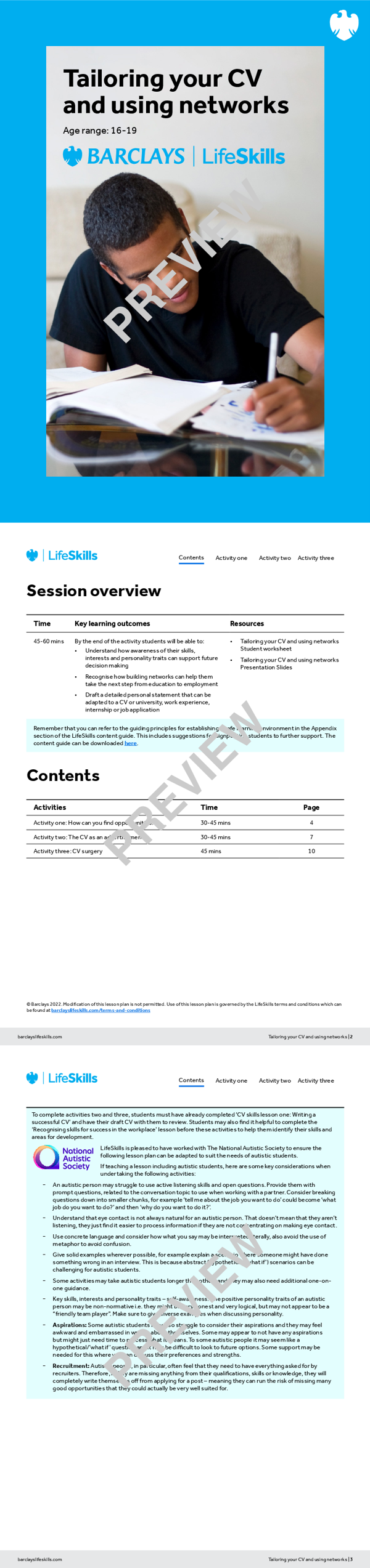 This lesson is designed to help students understand the benefits of building a network, improve networking skills and create a tailored, impactful CV. Students will need a draft CV with them to complete these activities.