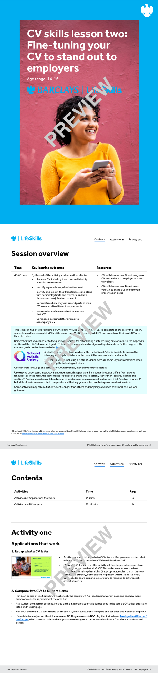 - CV skills lesson two: Full lesson plan and slides including icebreaker - for use with a group of students in the classroom