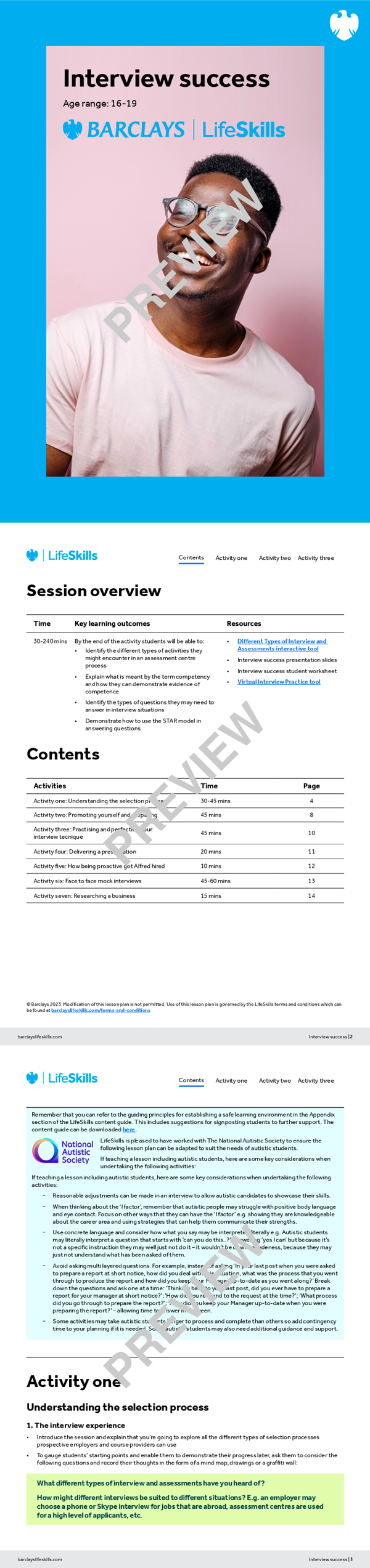 The activities in this lesson are designed to help students understand the different interview options employers and course providers use when choosing new candidates, and what they can do to plan and prepare.